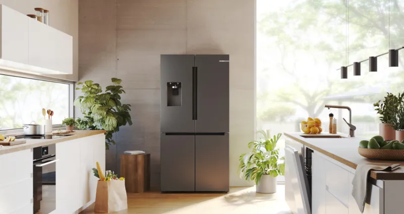 Discover our French door fridge freezers.With a Quick Ice & Water Dispenser and VitaFresh XXL drawers, our French door fridge freezers are the perfect blend of convenience and innovation. Flexible storage, smart features, and a premium design make them a standout in any kitchen. Enjoy fresh food for longer, easy ice on demand, and intuitive control – all in one impressive appliance.Learn more