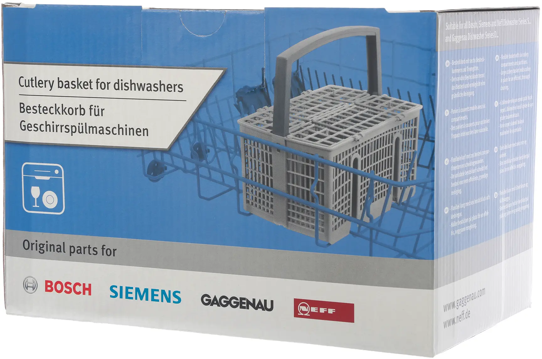 Large cutlery basket holds cutlery in place for an efficient, thorough cleaning