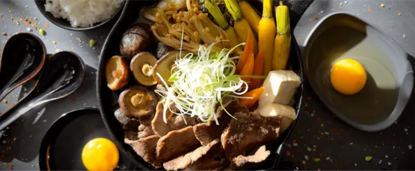 6. To serve, whisk 1 egg per serving in a side bowl each. Dip cooked meat and vegetables in the raw egg and enjoy with steamed rice.